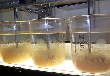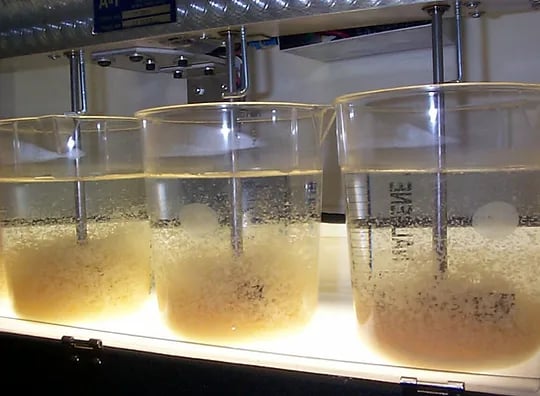 efectuăm teste de laborator (JAR-TEST) pentru determinarea unei rețete chimice pentru tratarea/epurarea apei.